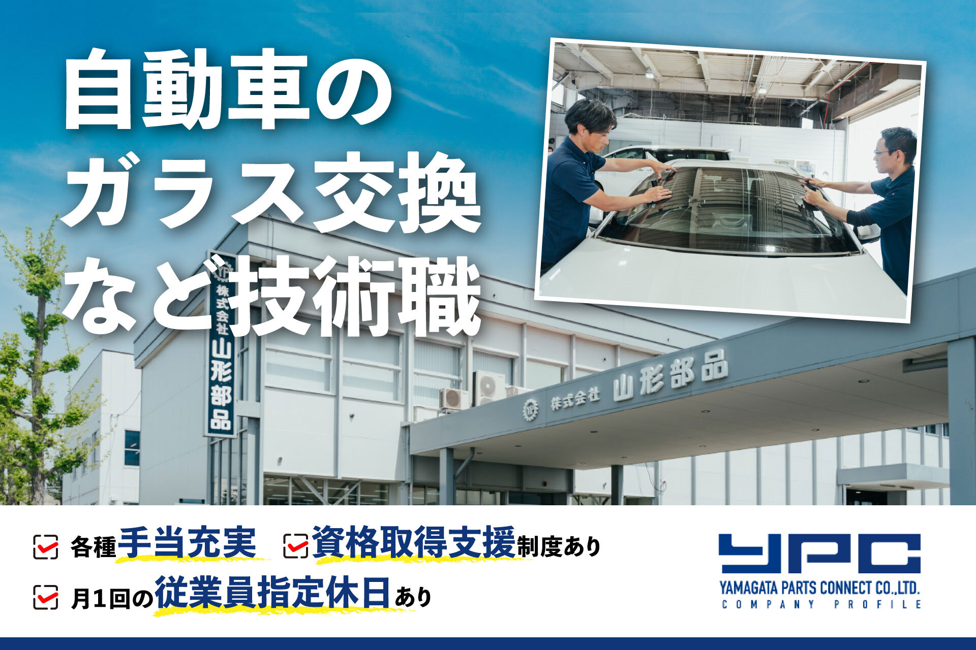 自動車ガラス交換等の技術職 資格または経験必須 Y-PIT仙台