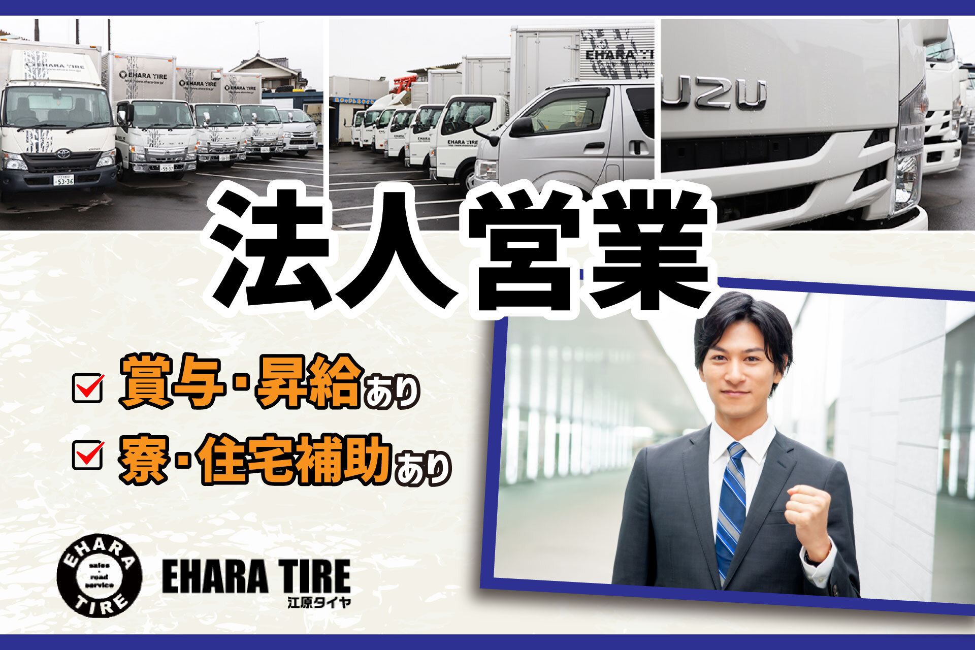 タイヤディーラーでの経験者の他、自動車業界で営業経験がある方も大歓迎です!新規の飛込み営業はなく、運送会社様等の既存のお得意先へのタイヤのごようきき営業でOKです!その他、将来の管理者候補として弊社の管理職の補助・企画戦略構築・管理業務なども行っていただきますので、営業職として更なるキャリアアップも目指せます。20~30代の若いスタッフ中心で元気で明るい会社です。