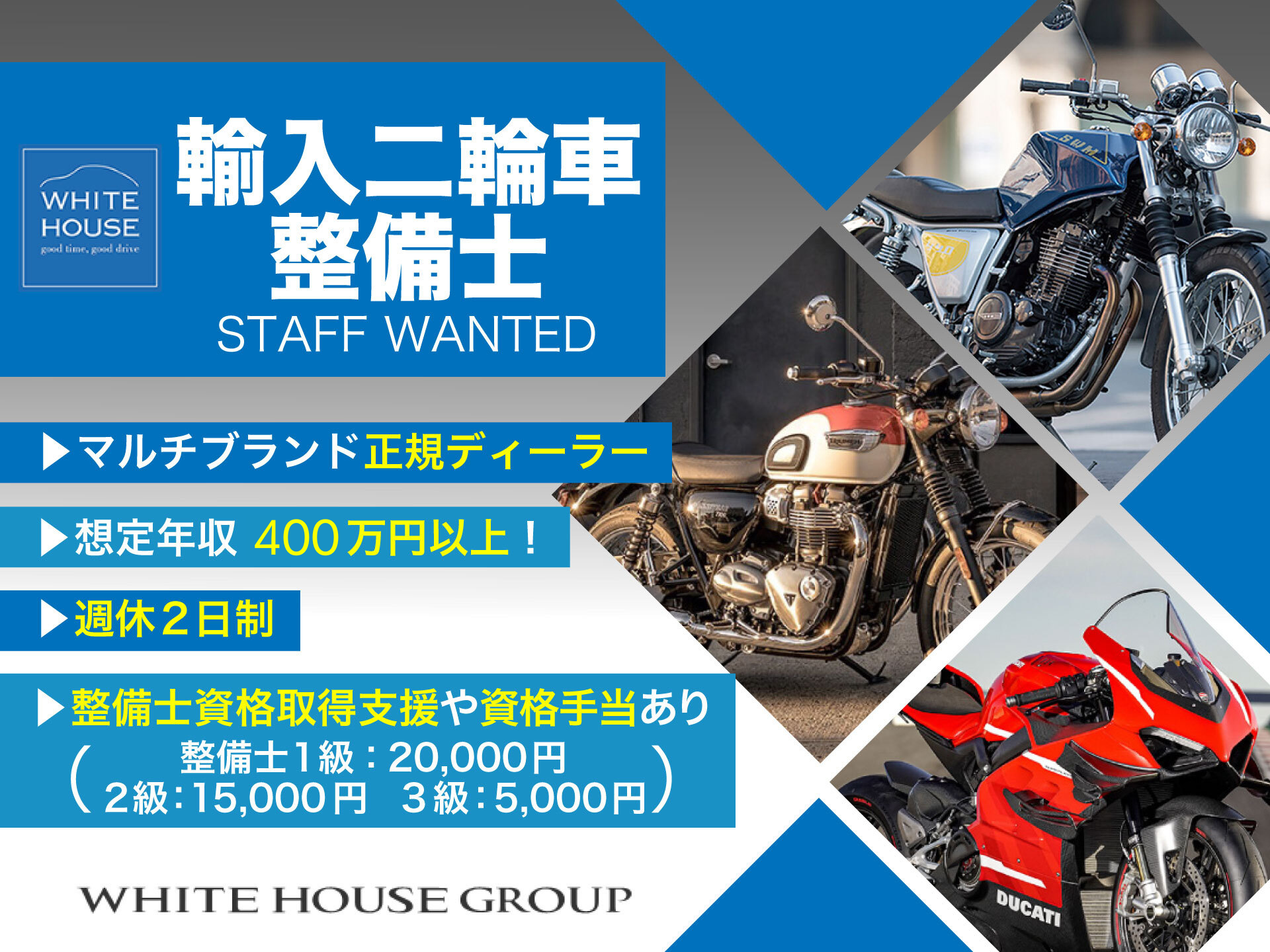 輸入二輪車整備士 工場長候補 資格必須 愛知県内