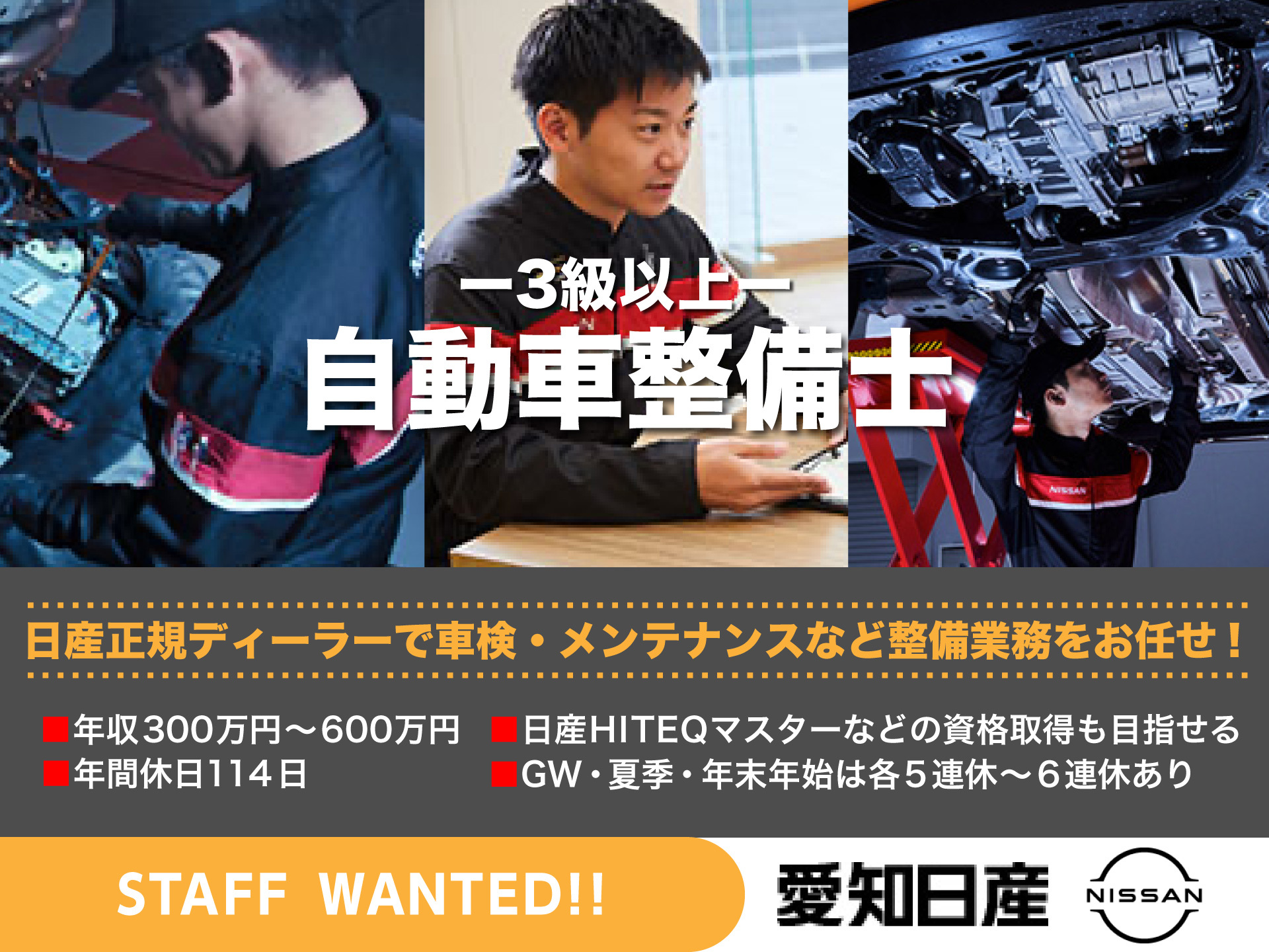 テクニカルスタッフ(自動車整備士)として自動車整備士業務全般に従事して頂きます。
