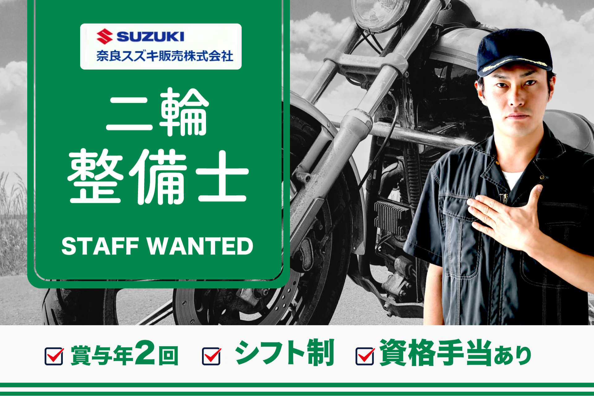 二輪整備士 2級整備士資格必須 スズキ SBS奈良橿原