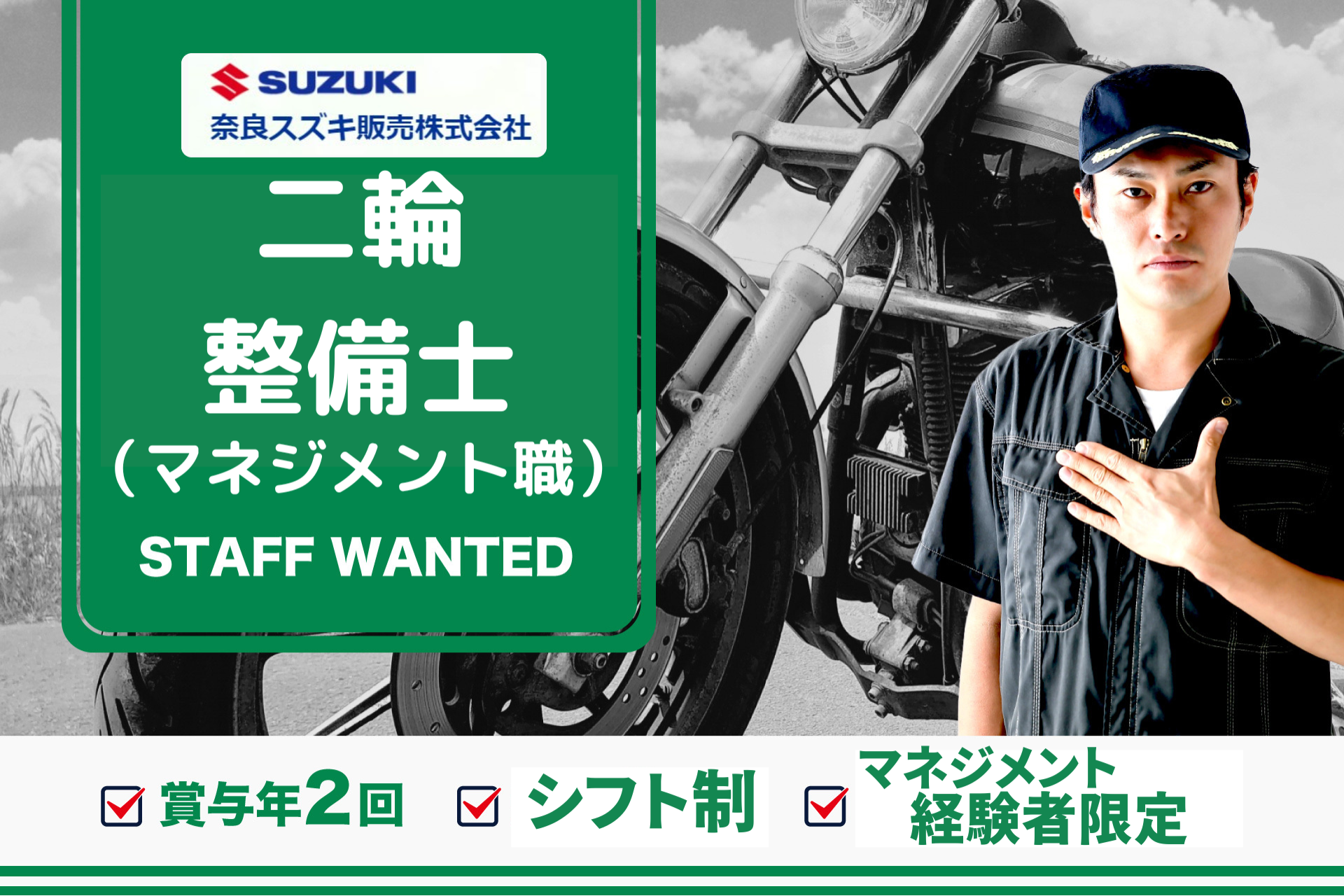 二輪整備士 マネジメント職 2級整備士資格必須 スズキ