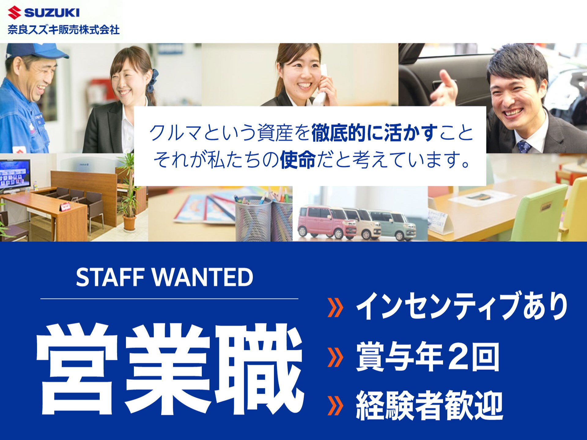 新車・中古車の販売 管理職候補 経験者 スズキアリーナ奈良郡山店