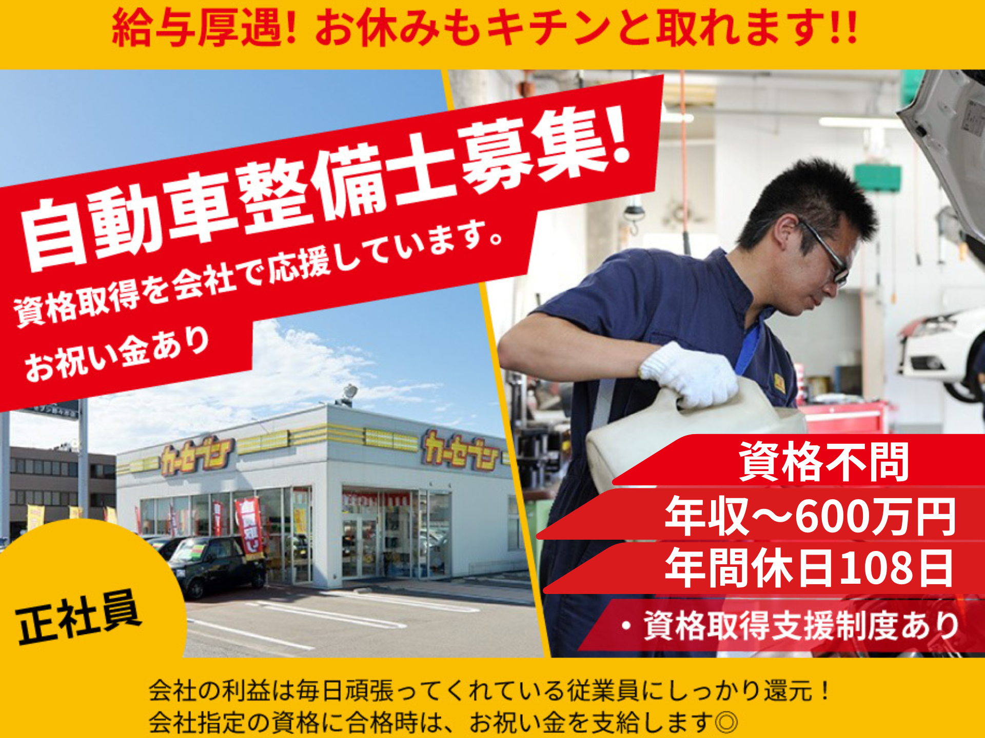 整備士 経験者限定 厚遇 資格取得支援